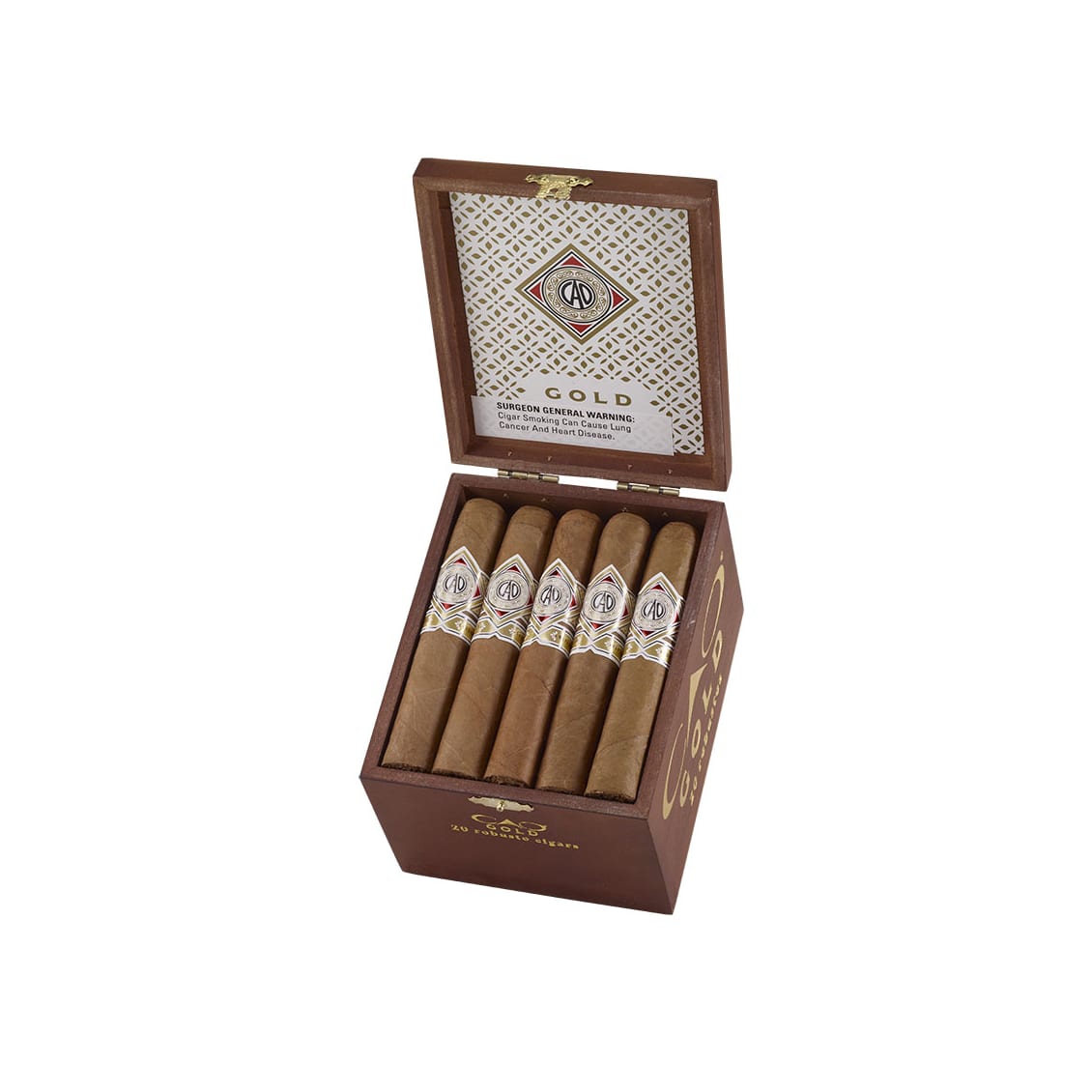 Like all of CAO's selections, CAO Gold cigars are praised for their rich flavor and expert craftsmanship. This affordably-priced edition is blended with choice Nicaraguan long-fillers and golden, silky Ecuadorian Connecticut wrappers. Mild in body, the smoke offers a smooth, effortless draw offering mellow, toasty-nutty flavors and a sweet aroma. A great cigar for introducing yourself to the CAO family of premium cigars. Invest in Gold by ordering a box, or start with a 5-pack today!