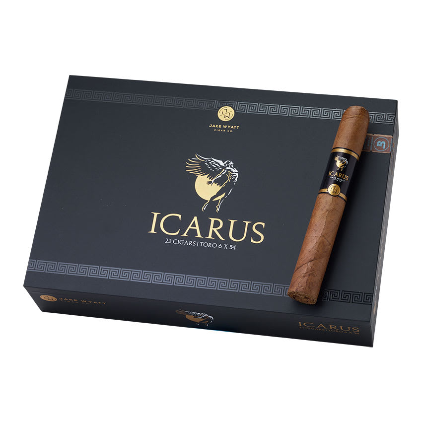 Part of their Connoisseur Collection, Jake Wyatt Icarus represents the next step in innovative cigar craftsmanship. Highlighting the blend is a unique mix that includes rare Tennessee fire-cured tobacco for a distinctive mesquite character. Coming wrapped in a rich San Andres Maduro leaf and combining Criollo 98, Piloto Cubano, and Pennsylvania Broadleaf fillers, the Icarus reaches the heights of exceptional complexity. This medium-full bodied smoke delivers an abundance of flavors: wood, earth, spices, coffee, leather, and more, all balanced with touches of molasses and mesquite. Perfect for the seasoned enthusiast seeking a truly unique and refined smoking experience, the Icarus pairs exceptionally well with peaty scotch or full-bodied beer. Order yours from Famous Smoke today.