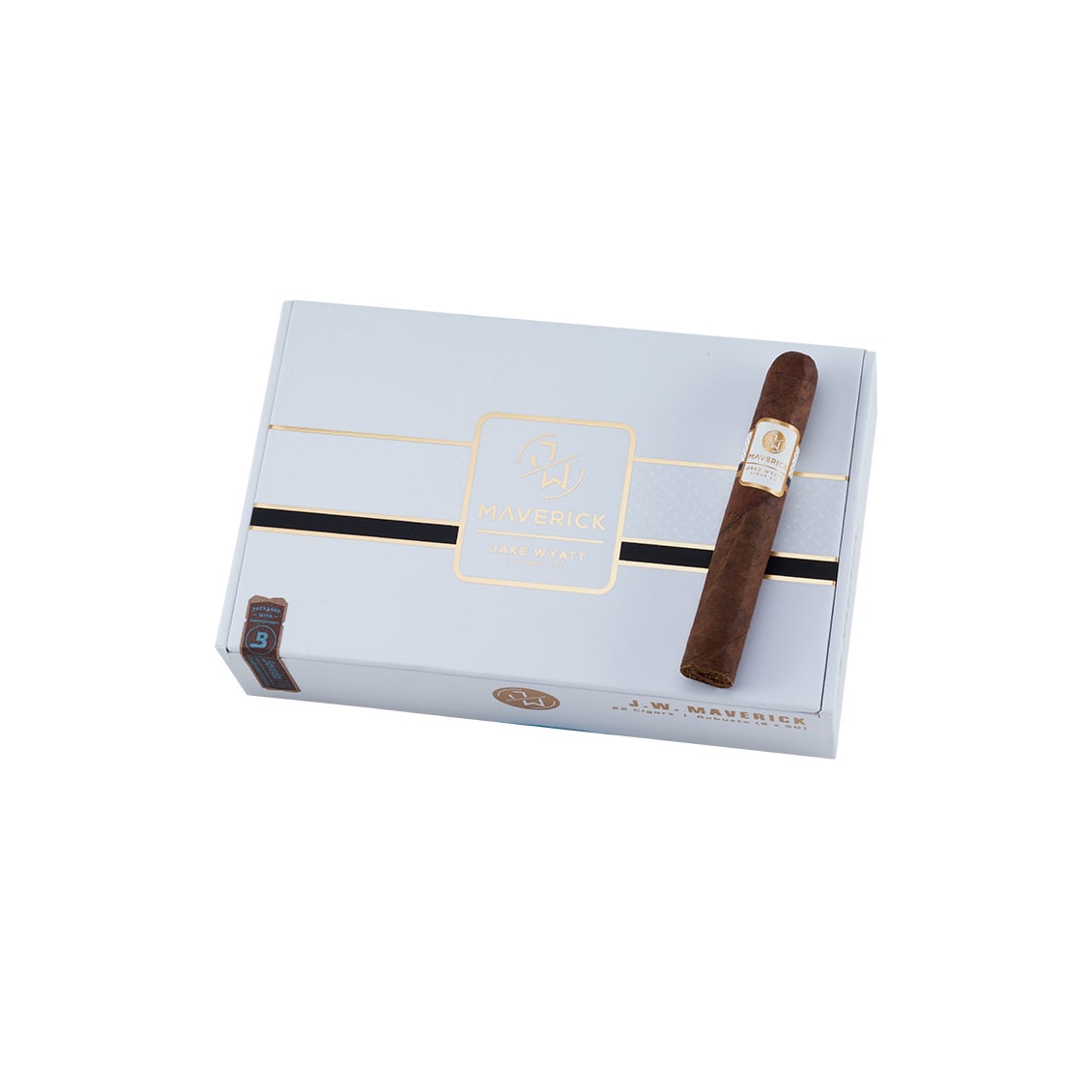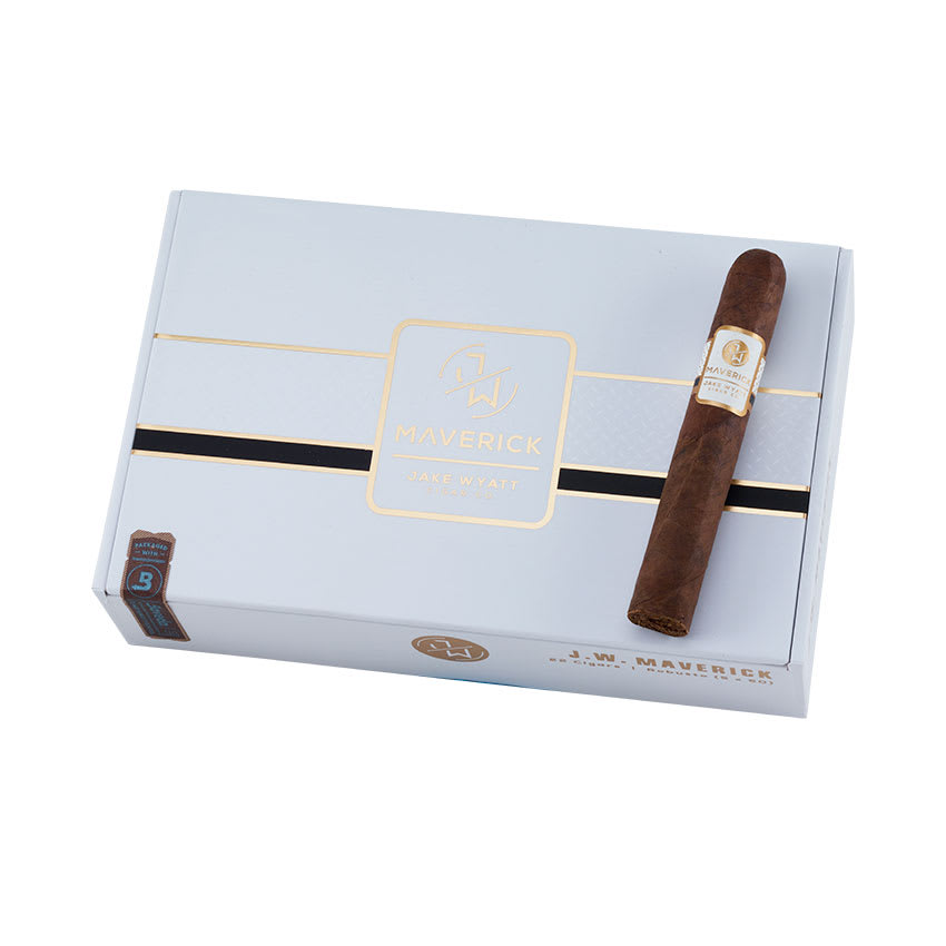 The Jake Wyatt Maverick is a bold Dominican smoke that brings a touch of blending magic along with it. These full-bodied premiums feature a dark, rich San Andres Maduro wrapper hugging a gourmet blend of Pennsylvania Broadleaf, Criollo, and Piloto Cubano fillers, all bound together by a Dominican Corojo leaf. The result is a palate-pleasing journey of dark chocolate, coffee, and fudge notes, complemented by subtle hints of black pepper. Perfect for those seeking a full-bodied experience that maintains its smoothness from start to finish. Pairs beautifully with a bold red wine or a strong espresso to enhance its rich, complex profile. Add the Jake Wyatt Maverick to your cart today!