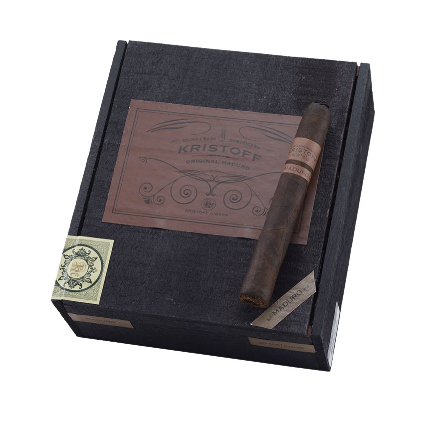 Kristoff Maduro cigars contain a well-aged blend of Dominican Olor and Cuban-seed Nicaraguan tobaccos, seamlessly encased in dark, oily Brazilian Maduro wrappers. With pigtail caps and shaggy feet, they're packaged in a cedar box surrounded by loose tobacco for a beautiful pre-embargo feel. Expect a medium-bodied smoke with undertones of earth and licorice, nutty spice, and a sweet finish. Kristoff Maduro cigars embody the taste and richness sought by the true aficionado.