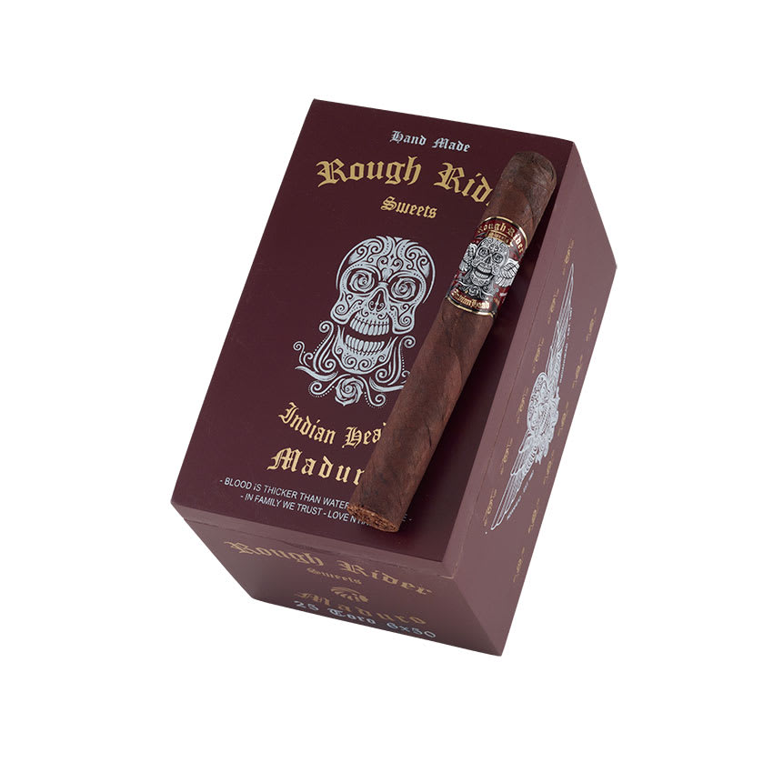 A sweet-tipped cap and a dark Maduro wrapper make the Rough Rider Sweets Maduro a unique and flavorful choice for the adventurous smoker. This mild-to-medium-bodied stick balances the natural earthiness of the tobacco with a pleasant, sugary finish.